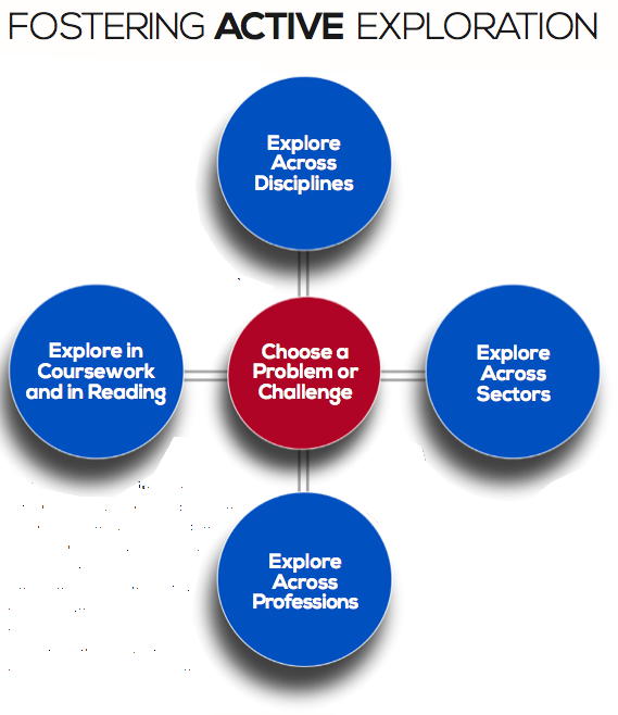 We Encourage Active Exploration : How do you prepare for a job that you have never encountered? How do you prepare for a job that does not yet exist? We believe that you can maximize serendipity by thinking about a problem or challenge you are concerned with, especially if you explore how you can solve that problem of interest through various professions, and disciplines, and sectors of the economy.